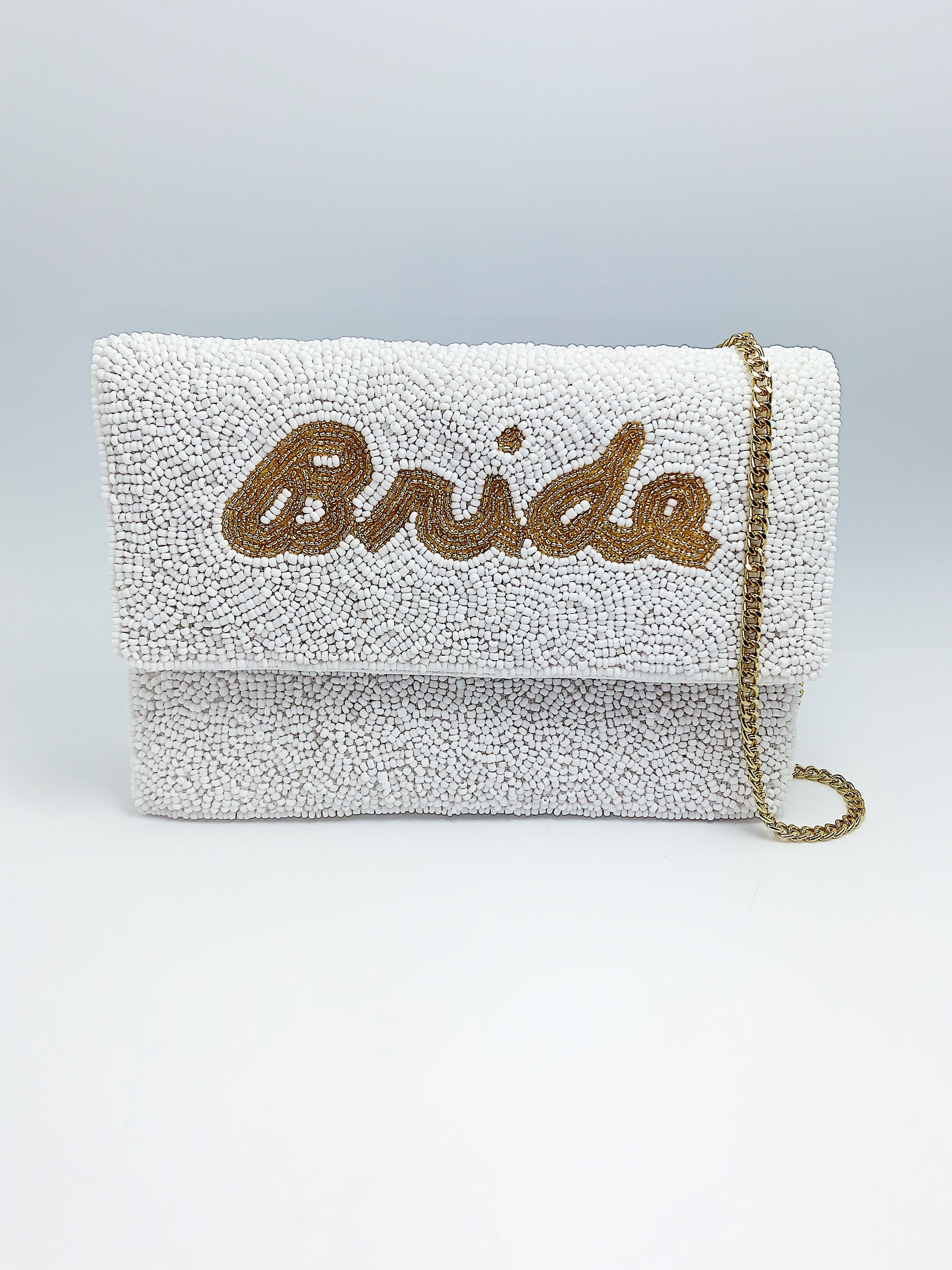 This gold bride beaded mini clutch is great for new brides!